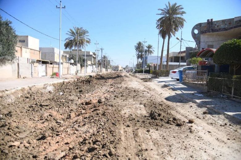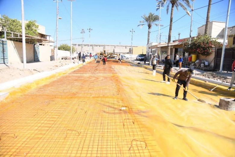 واوضح، أن "طول الشارع الحالي يبلغ (500) م جاهز للعملية الصب و( 500)م بمرحلة القلع وقد استكملت شبكة الكهرباء بنسبه ٩٠% والماء جاري العمل عليها بالوقت الحالي".
