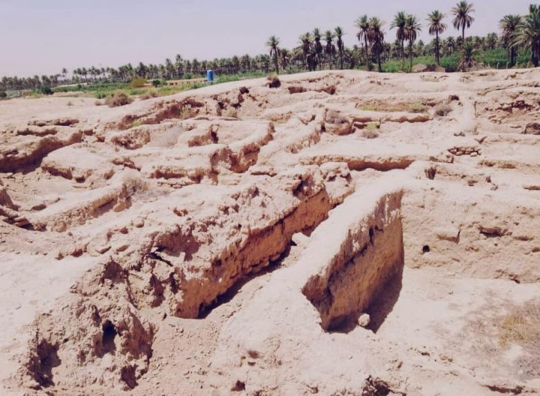ويوضح المؤرخ "ان الموقع خلا من ساكنيه في بداية العصر الإسلامي واندثر بعد هجرة ساكنيه إلى مدينة الكوفة بعد تمصيرها".