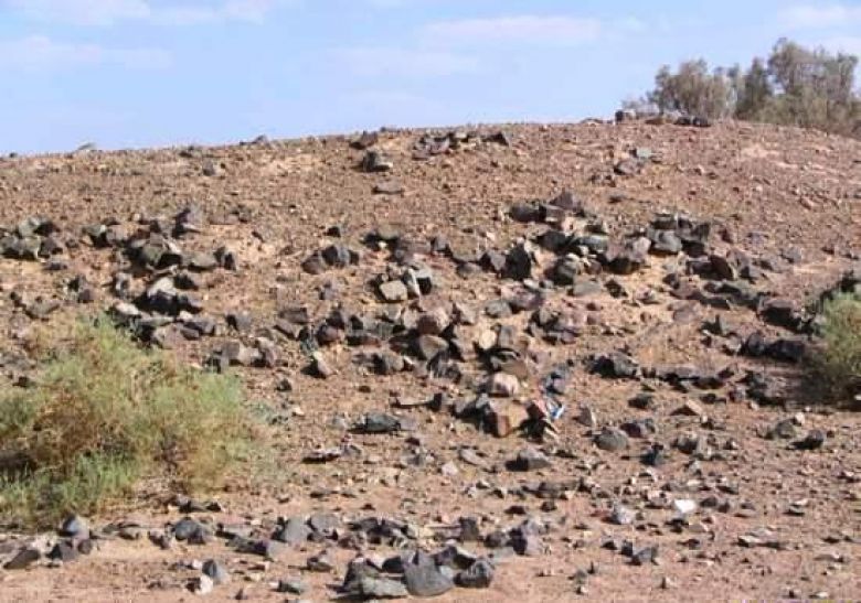 ويتابع ، "ان التعرف على تاريخ الموقع جاء من خلال فحص اللقى الآثارية والكسر الفخارية المتناثرة على سطحه لافتاً الى انتشار الكثير منها على سطحه".