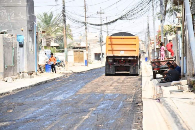 واضاف المسعودي، أن " سيتم تعبيد الشوارع بعد إكمال كافة أعمال البنى التحتية من شبكة الماء والمجاري ومياه الأمطار والاتصالات".