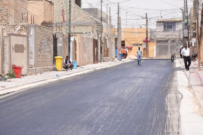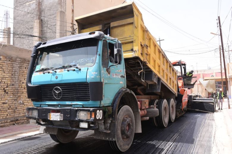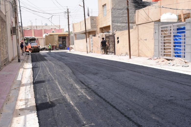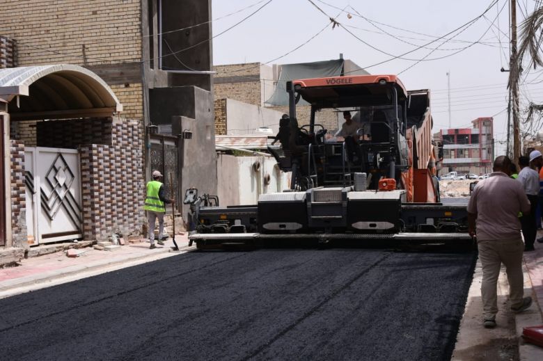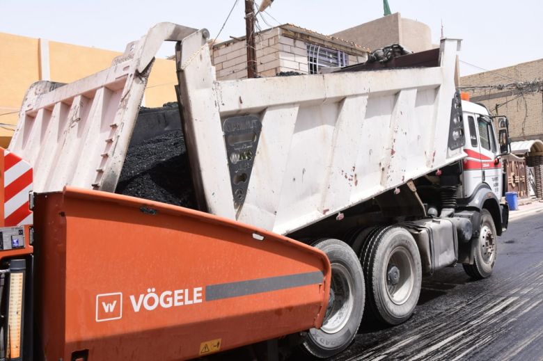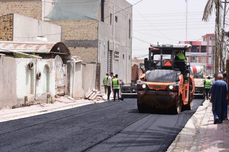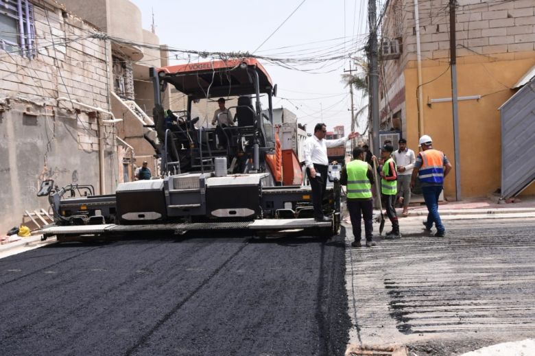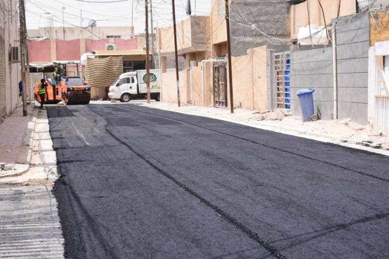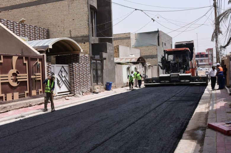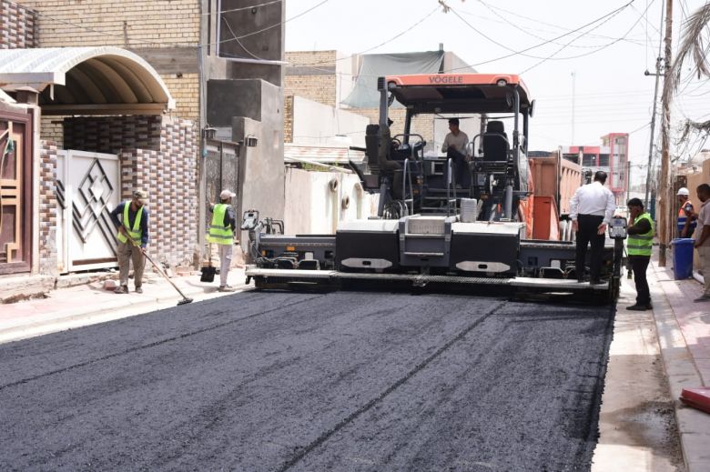 باشرت الكوادر الفنية والهندسية في قسم البلديات التابع للإدارة المحلية، اليوم الاربعاء، باكساء عدد من الشوارع الحيوية في قضاء الحر.