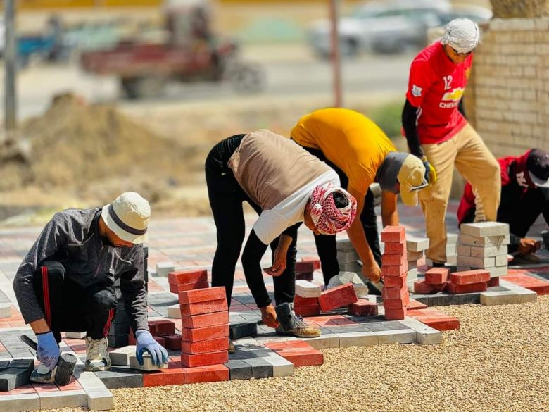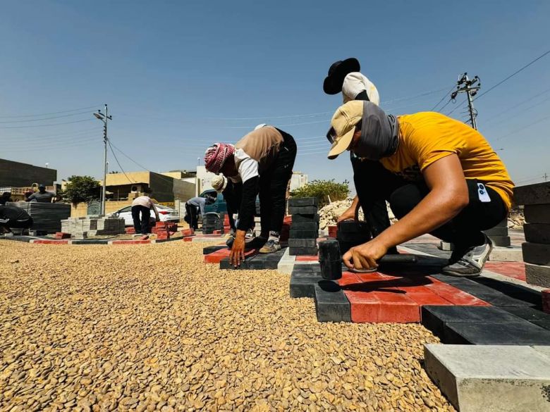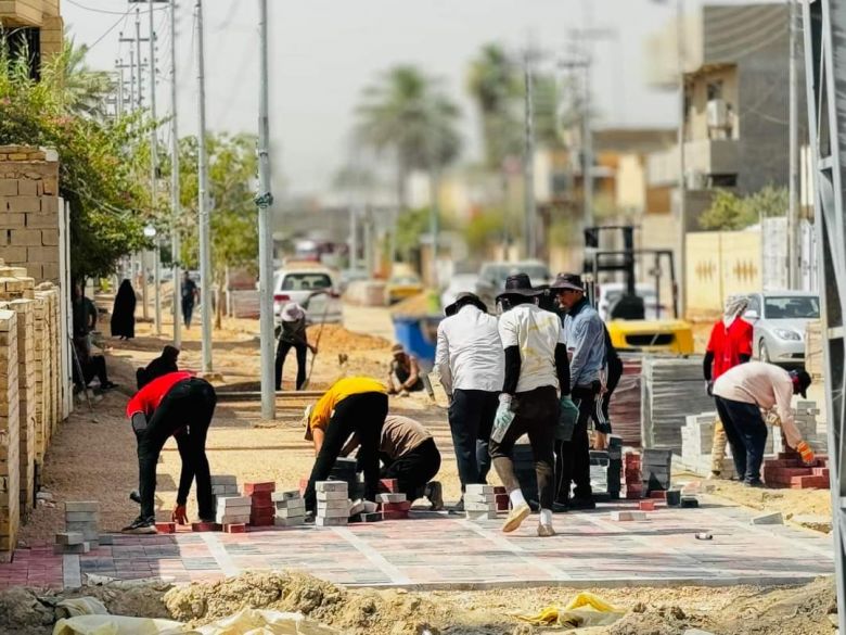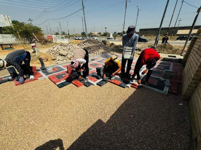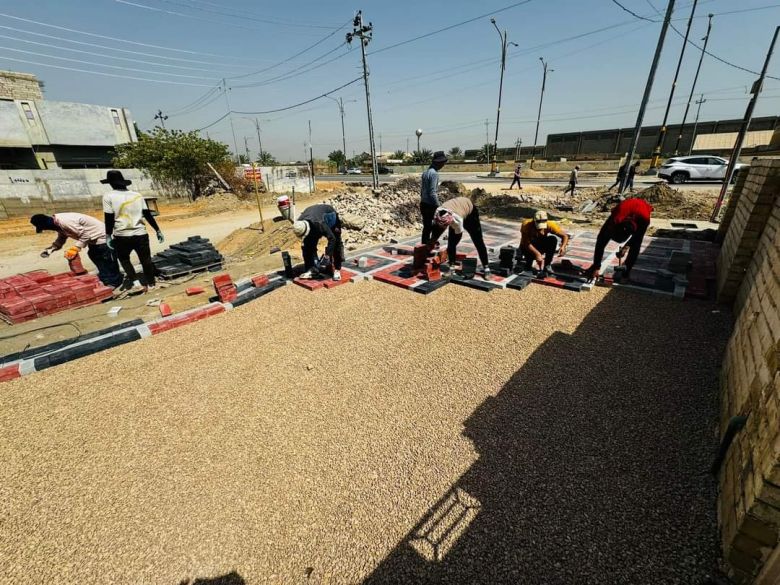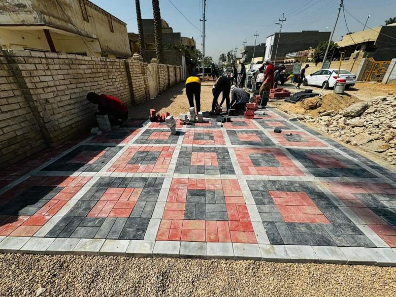 بالصور.. بلدية الهندية تباشر باعمال رصف المقرنص في شوارع حي المصطفى