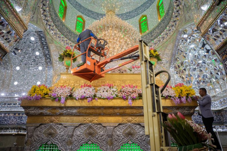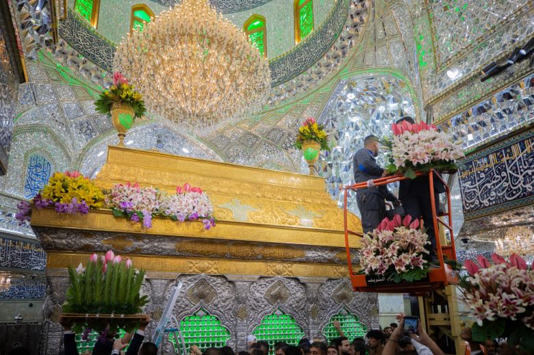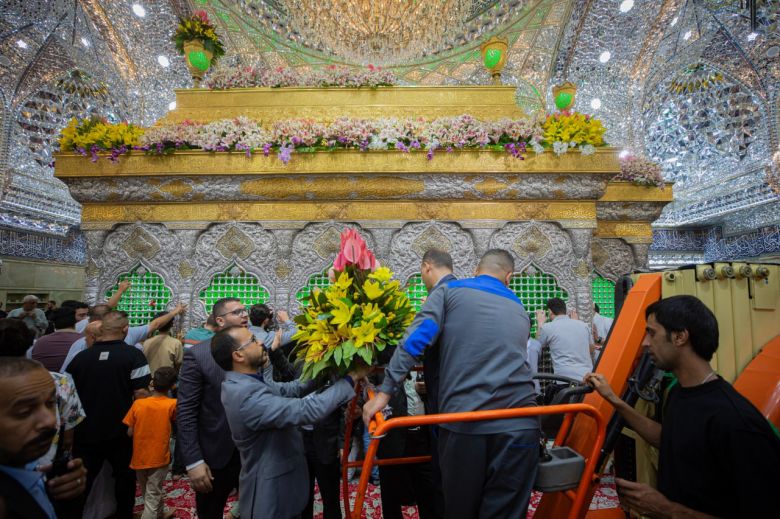 العتبة الحسينية تزين مرقد الإمام الحسين (ع) بالزهور بمناسبة عيد الغدير، وهو التاريخ الذي ألقى به النبي محمد ( ص) خطبة الغدير في منطقة غدير خم، أثناء عودته في حجة الوداع، في السنة العاشرة للهجرة، وولى فيها ابن عمه، الإمام علي، إماما على المسلمين من بعده.