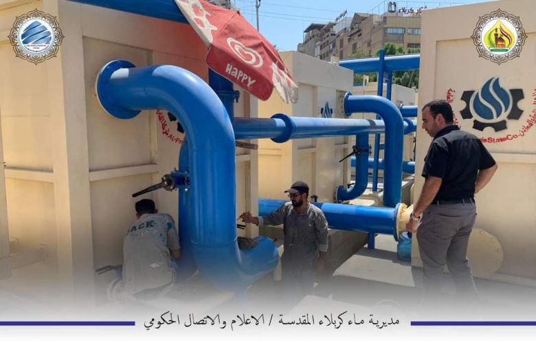 أوشكت الملاكات الهندسية والفنية التابعة لمديرية ماء كربلاء على انهاء مجمع ماء بطاقة ٥٠٠ م3/ الساعة في منطقة باب بغداد ضمن محطة ماء الخام بعد أعمال ربط خط الدفع بالخطوط الناقلة الواصلة الى مركز المدينة".