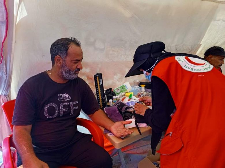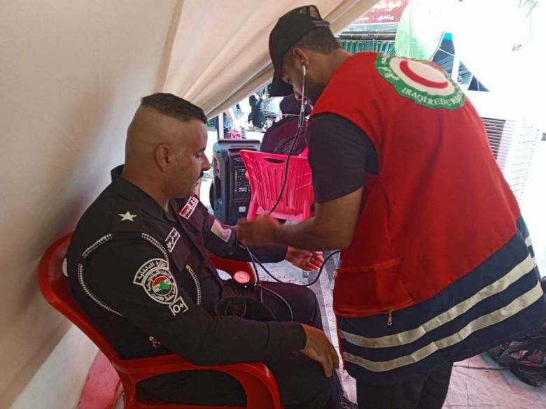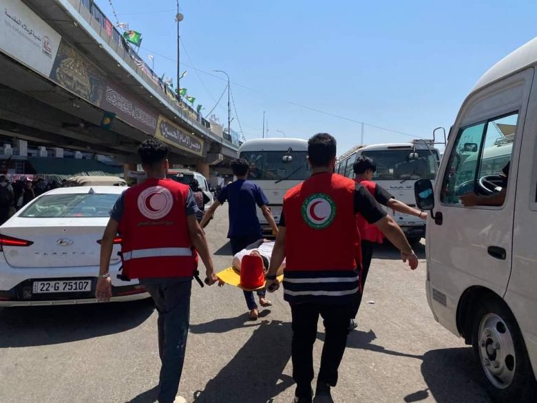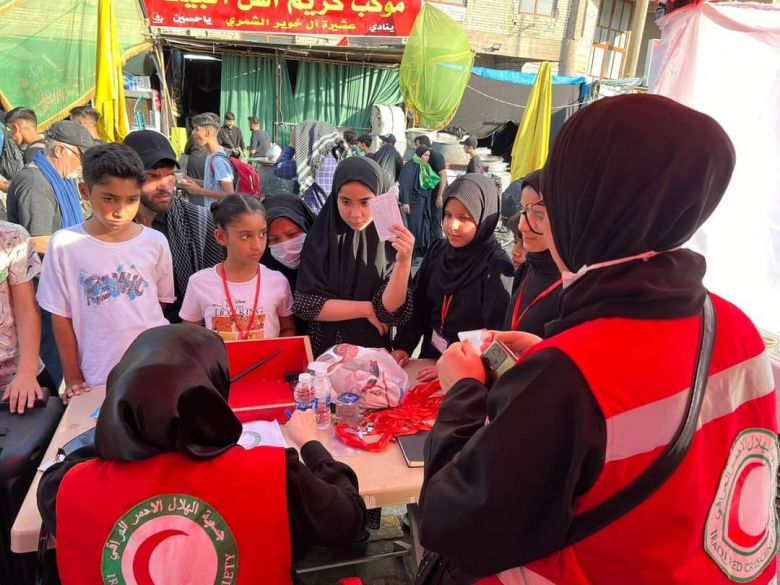استنفرت جمعية الهلال الاحمر العراقي كامل مواردها البشرية والالية لتقديم الخدمات الاسعافية والطبية لزائري اربعينية  الامام الحسين عليه السلام .