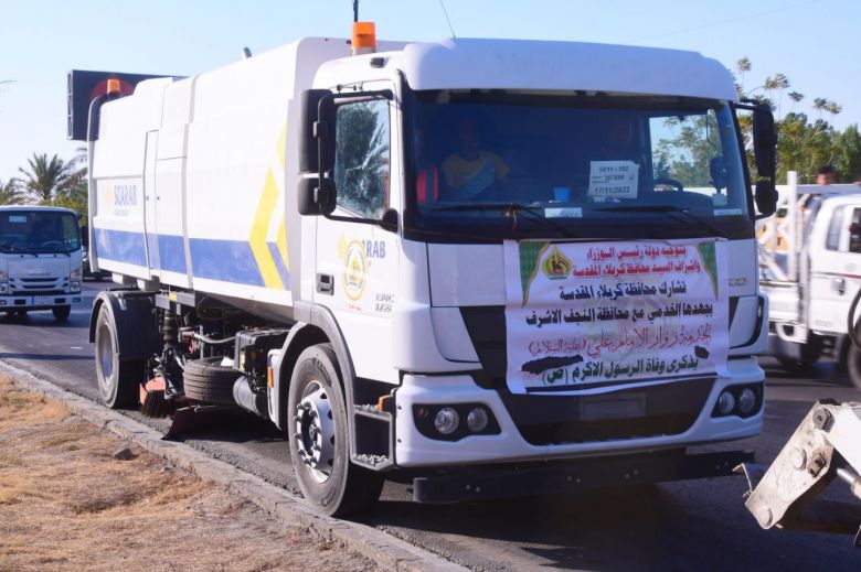 واوضح الشريفي، ان "الأُسطول الآلي انطلق، اليوم ويضم عددا من آلاليات من بينها كابسات جمع النفايات وحوضيات نقل الماء وستدخل الخدمة حال وصولها في الطريق الرابط بين مدينتي كربلاء المقدسة والنجف الأشرف وتستمر لغاية نهاية زيارة ذكرى استشهاد الرسول محمد (ص)".