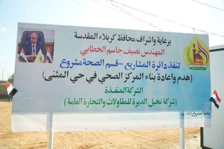 واضاف، ان "قضاء الهندية شهد اليوم وضع حجر الاساس لمشروع هدم واعاده بناء المركز الصحي في حي المثنى في القضاء".