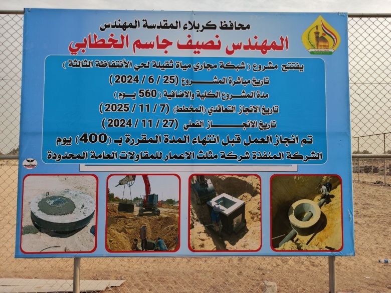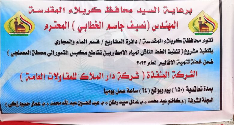 واشار مراسل موقع كربلاء الاخباري، ان "تم وضع حجر الاساس لمشروع تنفيذ الخط الناقل لمياه الامطار من تقاطع حي الحر الى محطة المعملجي مع الخط الناقل للمياه الثقيلة من محطة حي المعلمين الى تقاطع الالبان، لتشهد منطقة تقاطع مكبس التمور الى محطة المعملجي وضع حجر الاساس لمشروع تنفيذ الخط الناقل لمياه الامطار ضمن خطة المحافظة لتنمية الأقاليم لعام ٢٠٢٣ ضمن خطط الحكومة المحلية في تطوير الواقع الخدمي في المحافظة".