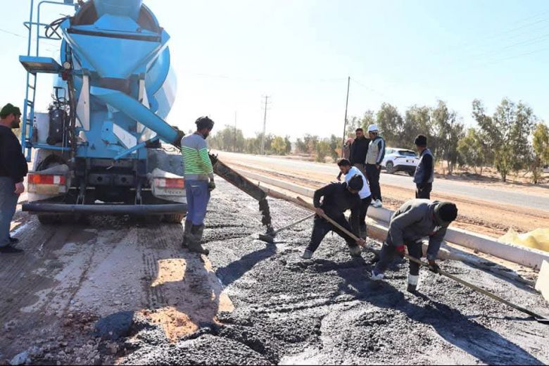 واضاف السلطاني، أنه "تم إنجاز أعمال طبقات الاسفلت المتضررة وتوسعة الطريق من عرض( ٧،٥م ) الى (١٥م ) و انجاز أعمال فرش الحصى الخابط بسمك (٣٠) سم بالكامل و الإستمرار بأعمال الصب الكونكريتي المسلح بسمك (٣٠) سم".