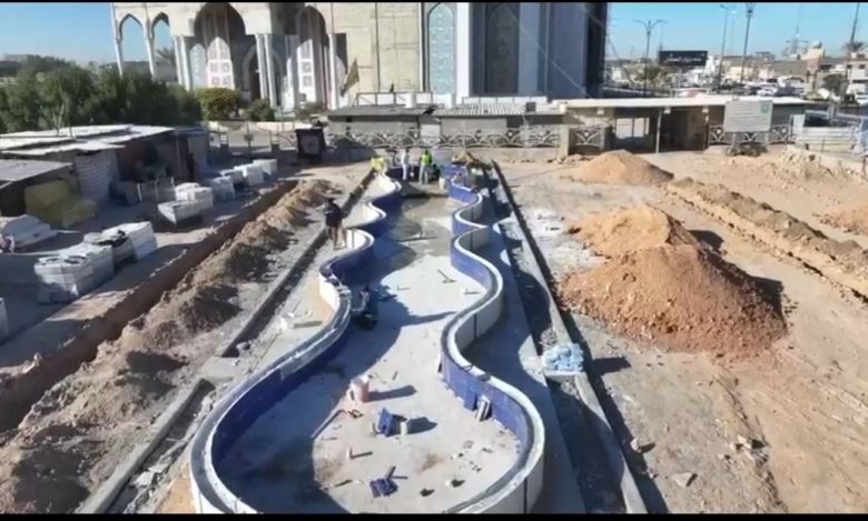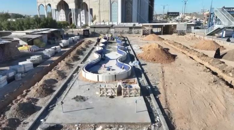 وأوضح العكابي إن" المشروع يشمل إنشاء نافورة تفاعلية ورصف المساحات الأرضية بمادة المقرنص ، والعمل يتم الآن في المرحلة الثالثة وتشمل تطبيق المرمر ورصف المقرنص بعد إكمال اعمال تسليح النافورة وصب الرفت".
