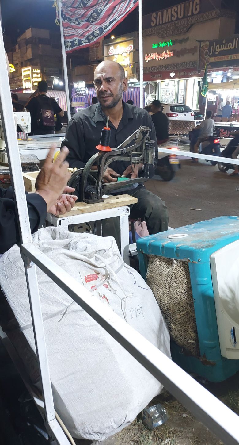 وتابع باقر حديثه المتواصل بشغف ليخبرنا، بان " آلة الخياطة الوحيدة اصبحت عشر آلالات ولم ابقى وحيدا فعمل معي عددا من ابناء القضاء من الشباب الكسبة، لنكن فريقاً متكاملاً نصلح احذية الزائرين وحقائبهم ونعطيهم حقائب تم تجميعها من اهالي القضاء في حال عجزنا عن اصلاح الحقيبة الممزقة واصبح لدينا مكانا في مركز القضاء ، ببركات الامام الحسين عليه السلام جهز بأهم اللوازم التي تساعدنا في عملنا من سقيفة حديدية وجرارات تجمع لوازم الخياطة ومبردات ، الامر الذي جعلنا نعمل على مدار (٢٤) ساعة وعلى ثلاث شفتات صباحية ومسائية وليلاً".
