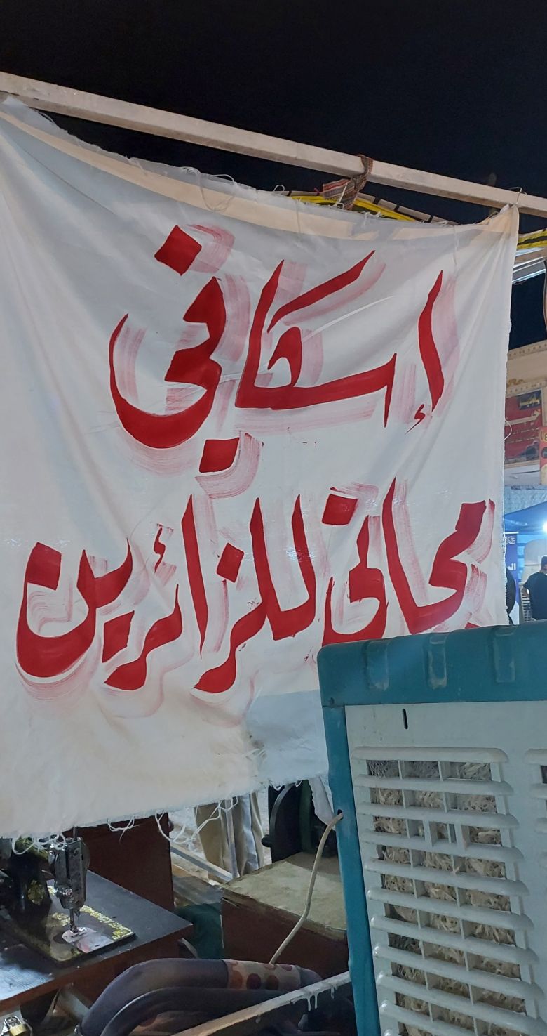 واضاف، ان "السنوات الماضية واجهتني تحديات كبيرة لأستمر في عملي كأسكافي يعمل على طريق الحسين عليه السلام، فكنت بحاجة ملحة الى مكائن جديدة فقد تعطلت آلة الخياطة الوحيدة التي أملكها وفشلت في اصلاحها لمرات عديدة حتى تملكني اليأس في اصلاحها فتقدم شخص من اهالي قضاء الهندية حاملا معه مبلغاً من المال وقال لي اشتري آلة خياطة جديدة واكمل عملك ، فاصابني الذهول حيث كان المبلغ هو سعر آلة جديدة، فكان هذا ايحاء الهي بان اكمل اعملي فكتبت على الآلة الجديدة بعد شرائها (هدية صاحب العصر والزمان).