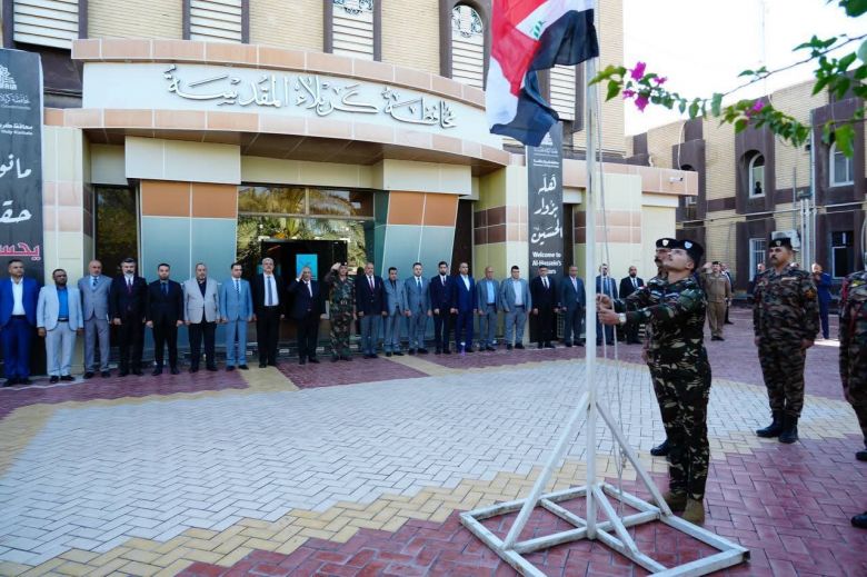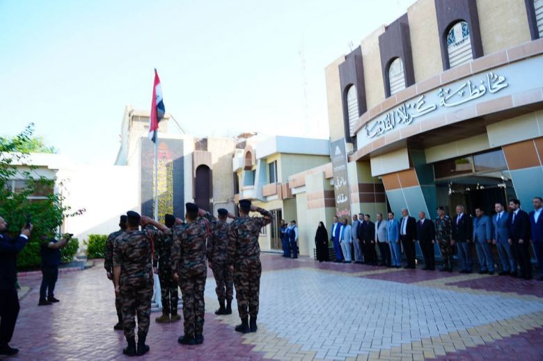 شهدت محافظة كربلاء المقدسة، اليوم الخميس، إقامة مراسيم رفع العلم العراقي في ديوان المحافظة، بمشاركة قائد شرطة كربلاء والكوادر المتقدمة في الحكومة المحلية.