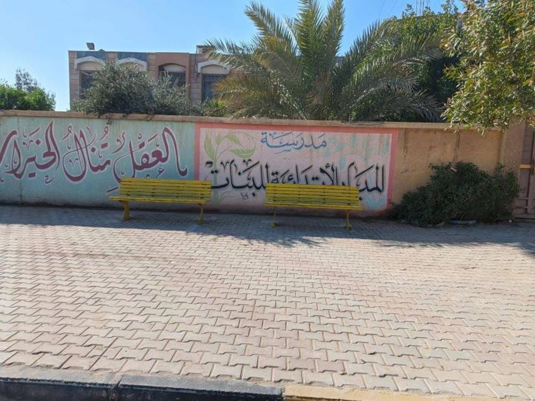 بلدية كربلاء المقدسة تهيئ بيئة مدرسية مريحة بنصب مصاطب جلوس أمام المدارس