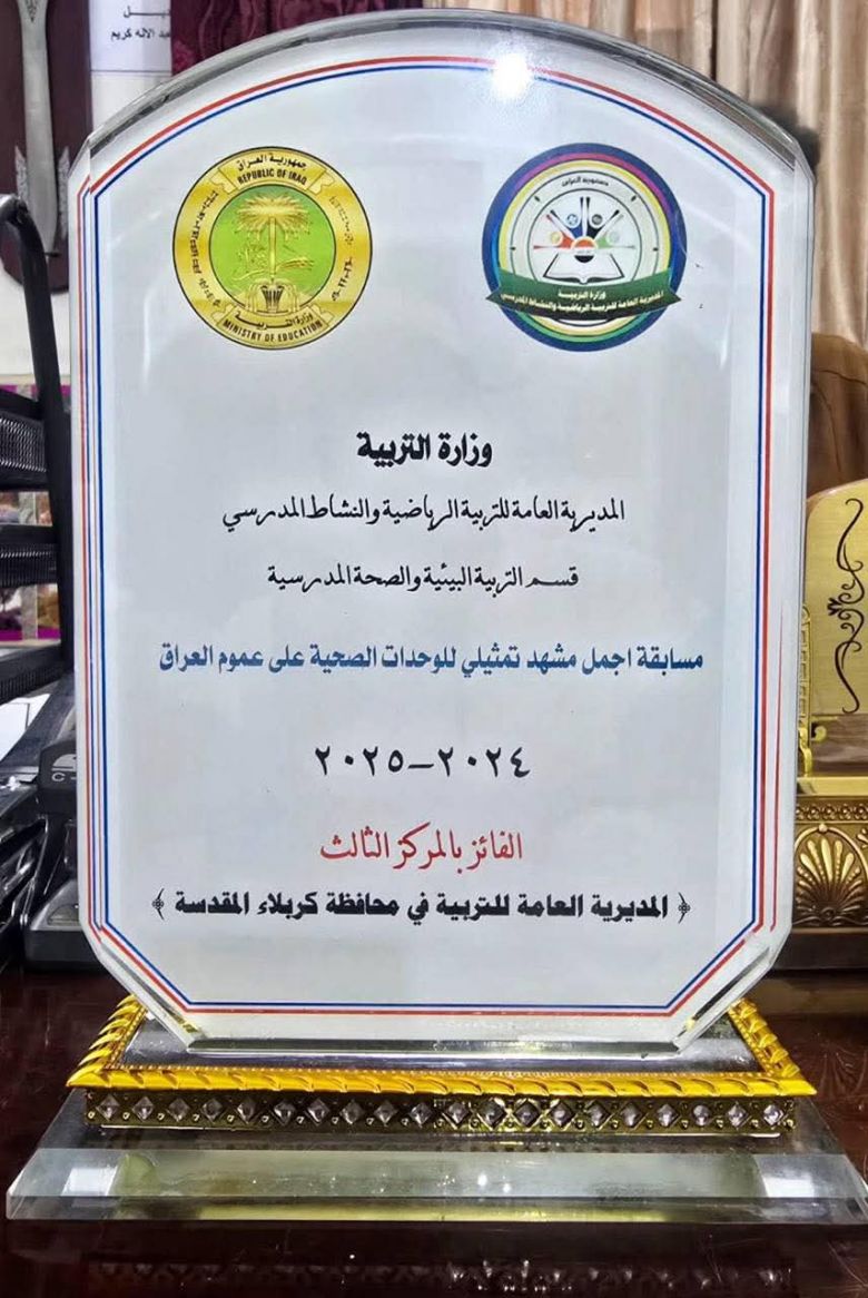 وقال مسؤول شعبة التربية البيئية والصحة المدرسية أحمد حسن صراوه في تصريح لموقع كربلاء الاخباري، ان "تربية كربلاء المقدسة تمكنت من إحراز المركز الأول في مسابقة أجمل حانوت مدرسي، فضلاً عن نيلها المركز الثالث في مسابقة أجمل حديقة مدرسية، والمركز الثالث في مسابقة أجمل مشهد تمثيلي في الوحدات الصحية، في إنجاز يعكس فاعلية البرامج البيئية والصحية المعتمدة داخل المؤسسات التربوية في المحافظة".