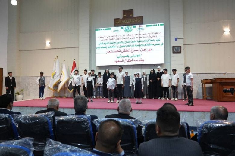 شهدت محافظة كربلاء المقدسة، اليوم الخميس، فعاليات مهرجان مسرح الطفل الذي نظمته جامعة كربلاء / شعبة حقوق الإنسان، بالتعاون مع لجنة التعليم العالي في مجلس المحافظة ومعهد نور الإمام الحسين (ع) للمكفوفين وضعاف البصر التابع لـ العتبة الحسينية المقدسة، تحت شعار "هويتي بصيرتي"، وبحضور رسمي وأكاديمي واسع.