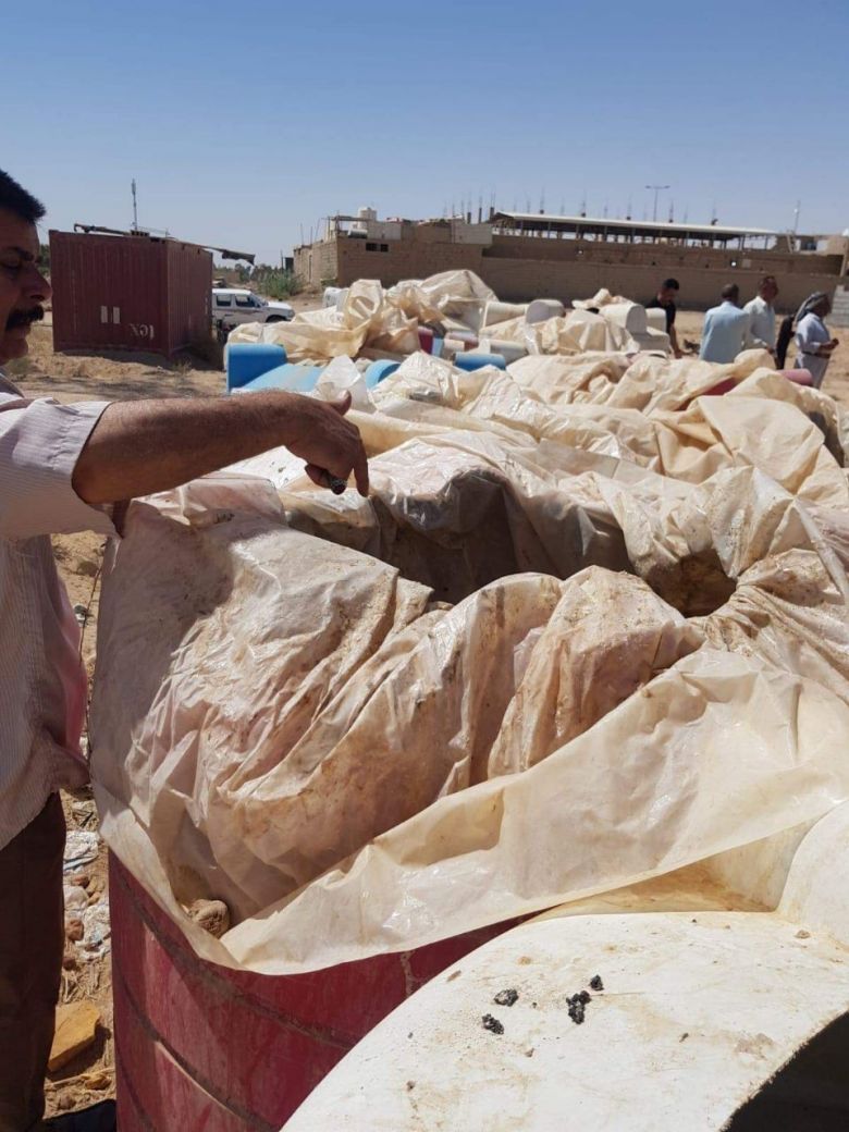 وتابع بأن "الأجهزة الرقابية وضعت يدها على المادة البالغة (10 أطنان) كانت معبّأة بحاويات بلاستيكية سعة (1000 لتر) وأخرى بسعة (500 لتر)".