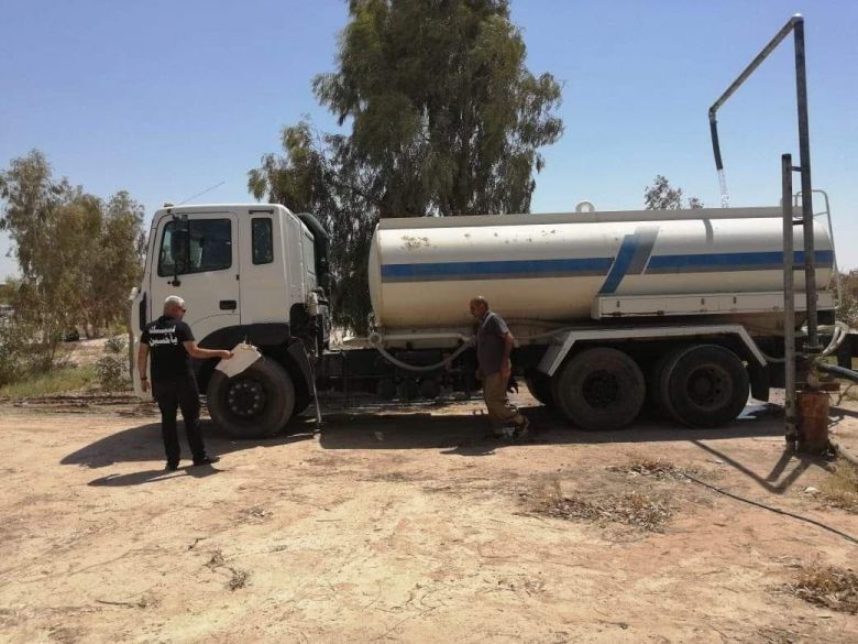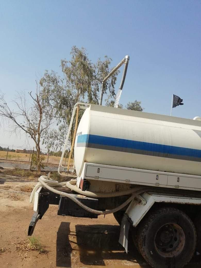 تزويد السيارت الحوضية بالمياه لخدمة الزائرين الكرام بعد نصب ثلاث شموع مياه بالتعاون مع هيئة المياه الجوفية ضمن مشروع طريق ياحسين.