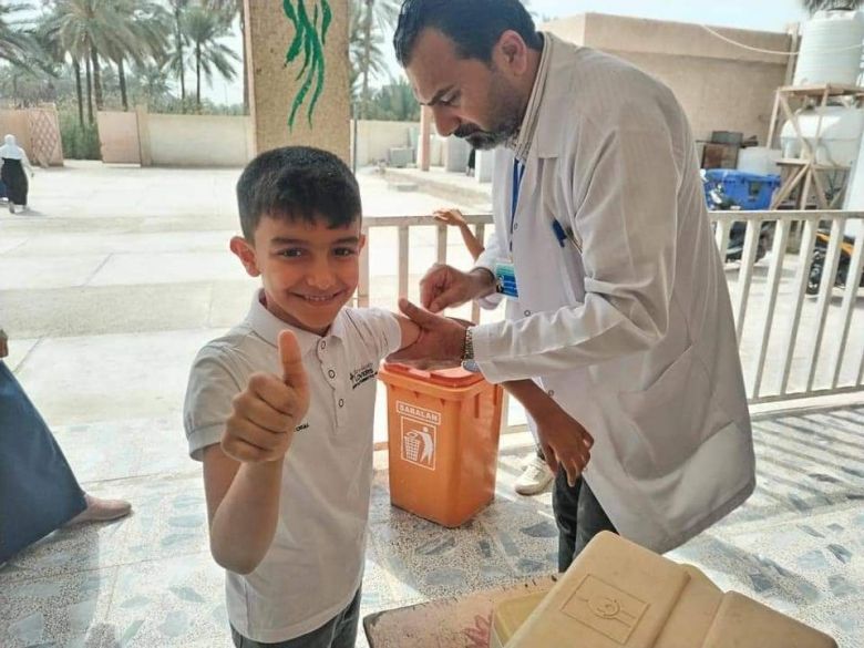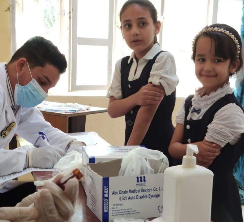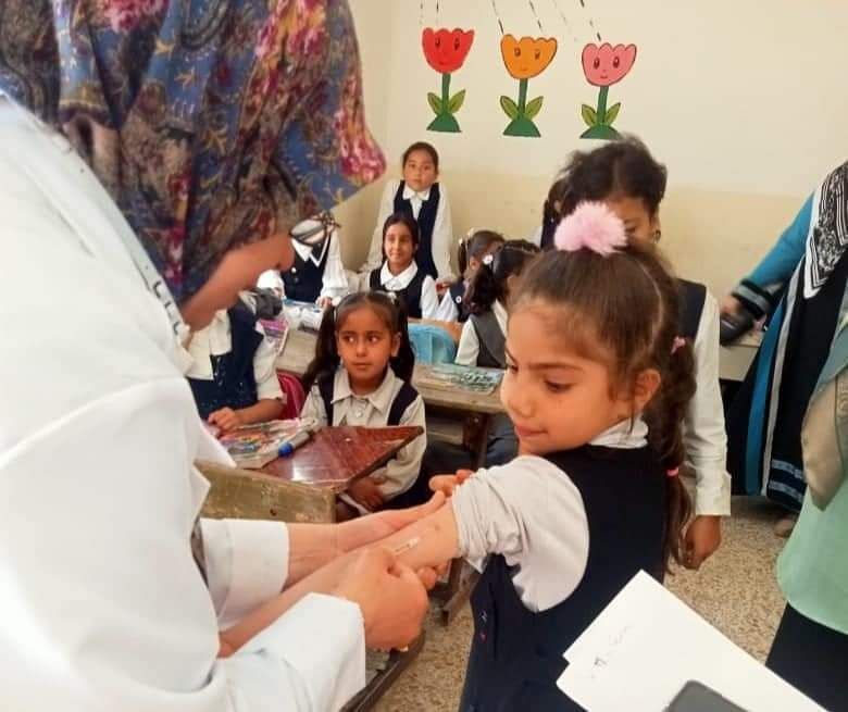 واوضح، أن الحملة قد شهدت تلقيح ( 453 ، 260 ) تلميذاً وطفلاً في المدارس الإبتدائية ورياض الأطفال ، وبمُشاركة ( 1083 ) مُنتسباً مُوزعين على ( 361 ) فرقة تلقيحية جوالة هيئتها الدائرة ، بمُوازاة إستمرار المراكز الصحية بتقديم الخدمة التلقيحية خلال أيام الحملة".