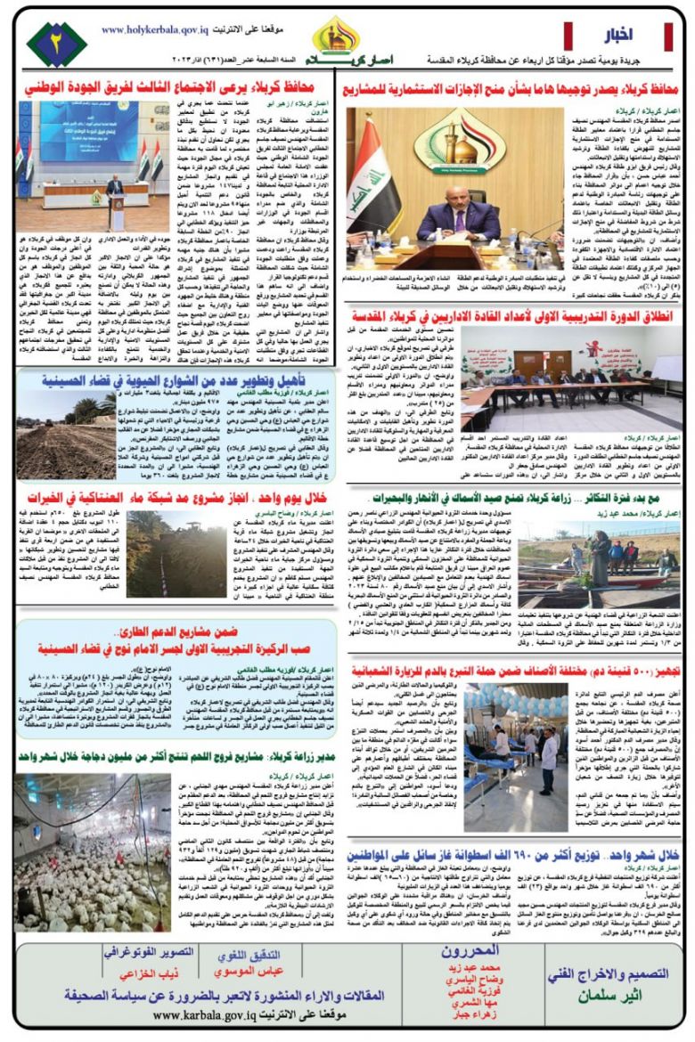 تصفح صحيفة كربلاء تنمية واعمار ذي العدد681