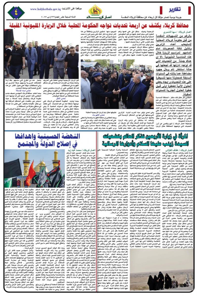 تصفح صحيفة اعمار كربلاء ذات العدد ٦٣٧