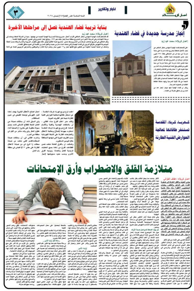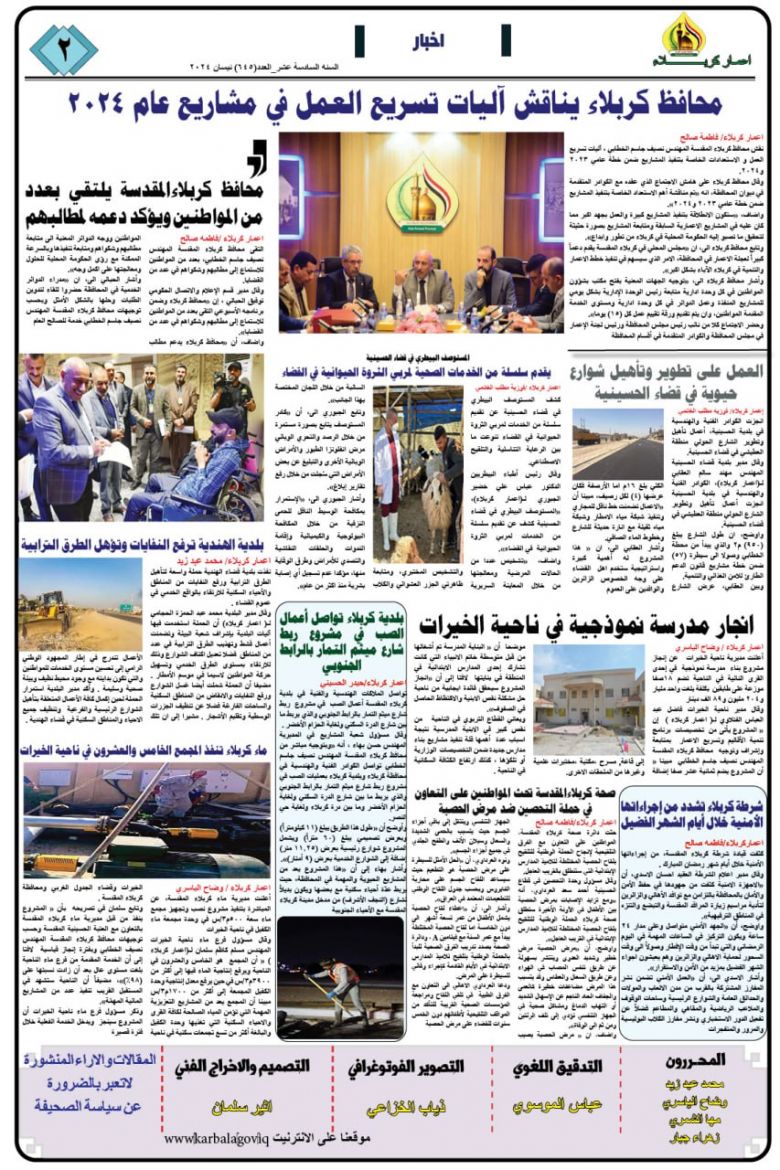تصفح صحيفة كربلاء تنمية واعمار ذي العدد 686