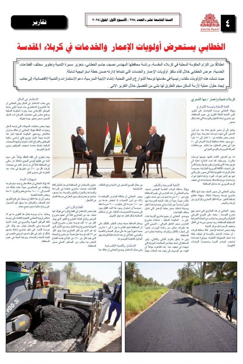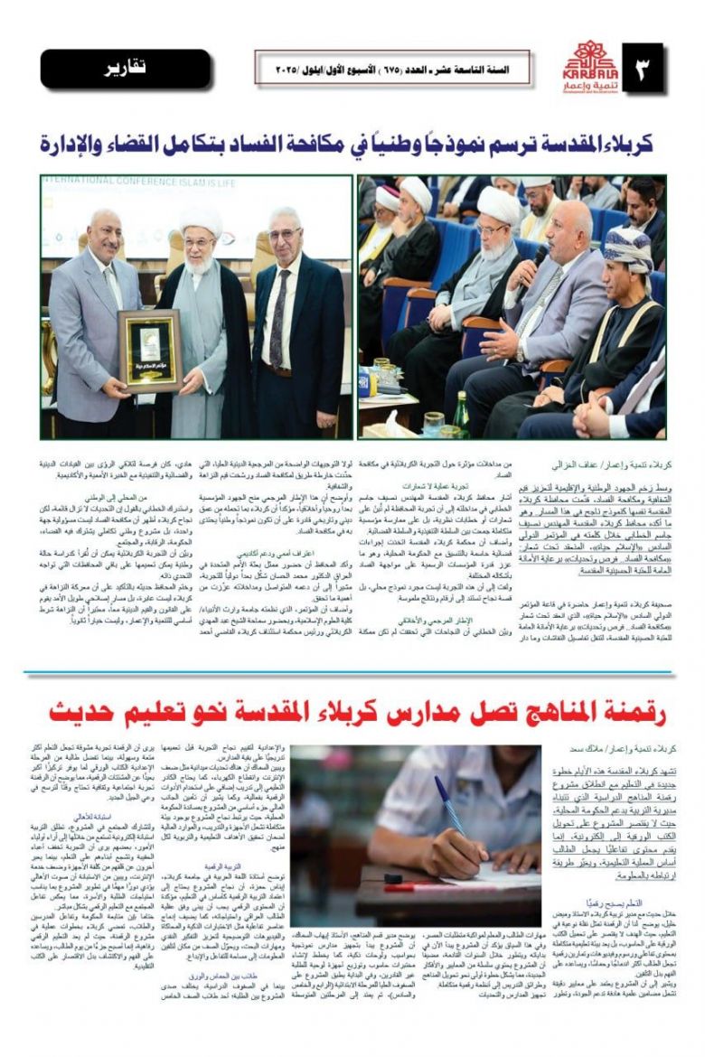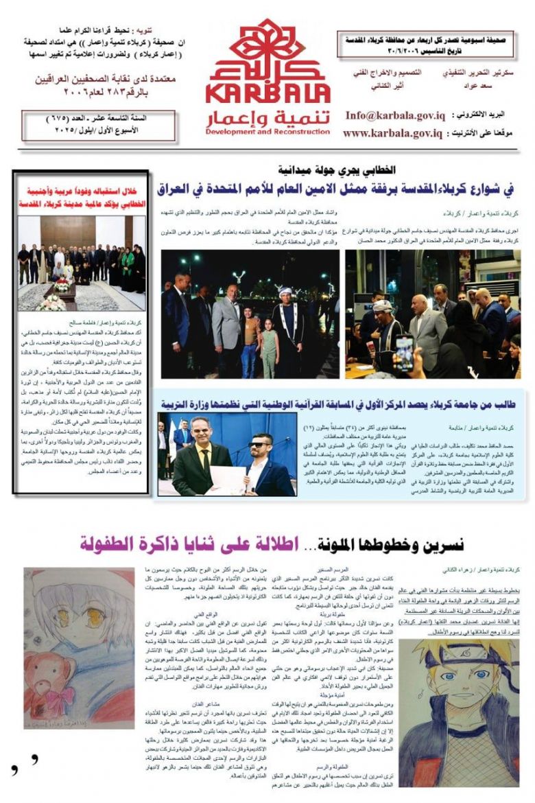 تصفح صحيفة كربلاء تنمية واعمار ذي العدد675