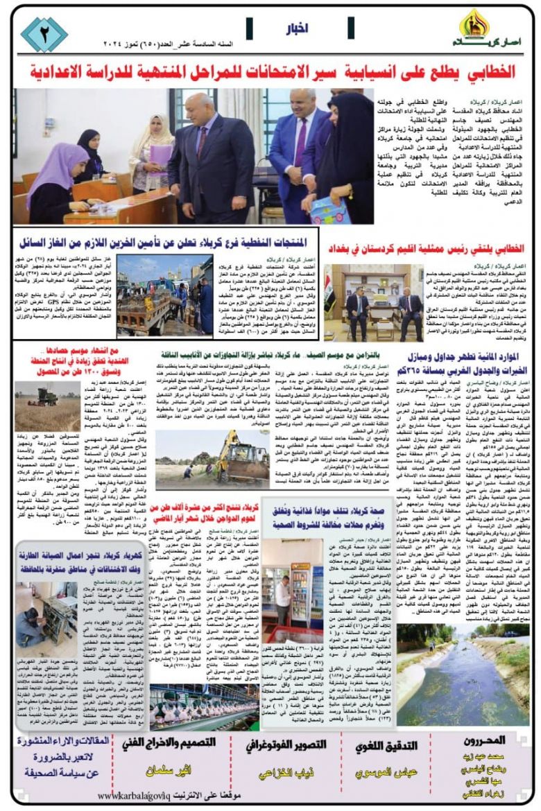 تصفح صحيفة كربلاء تنمية واعمار ذي العدد681