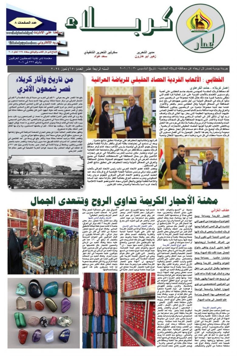 تصفح صحيفة كربلاء تنمية واعمار ذي العدد 678