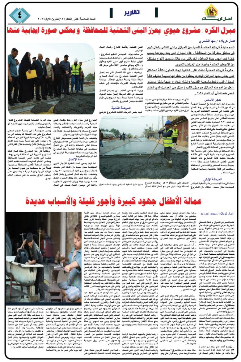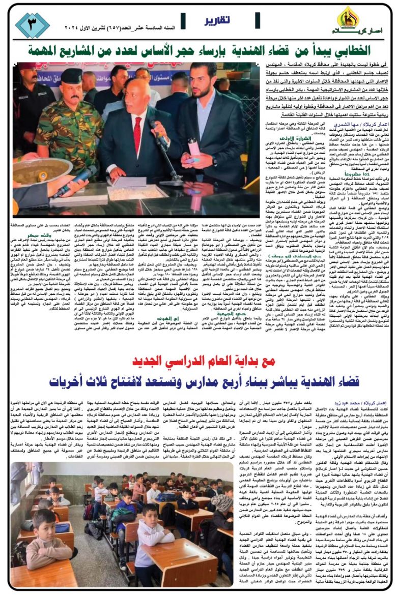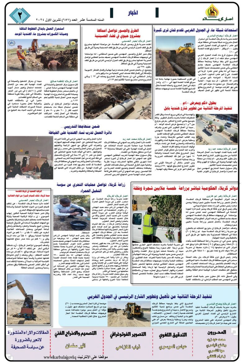 تصفح صحيفة كربلاء تنمية واعمار ذي العدد681