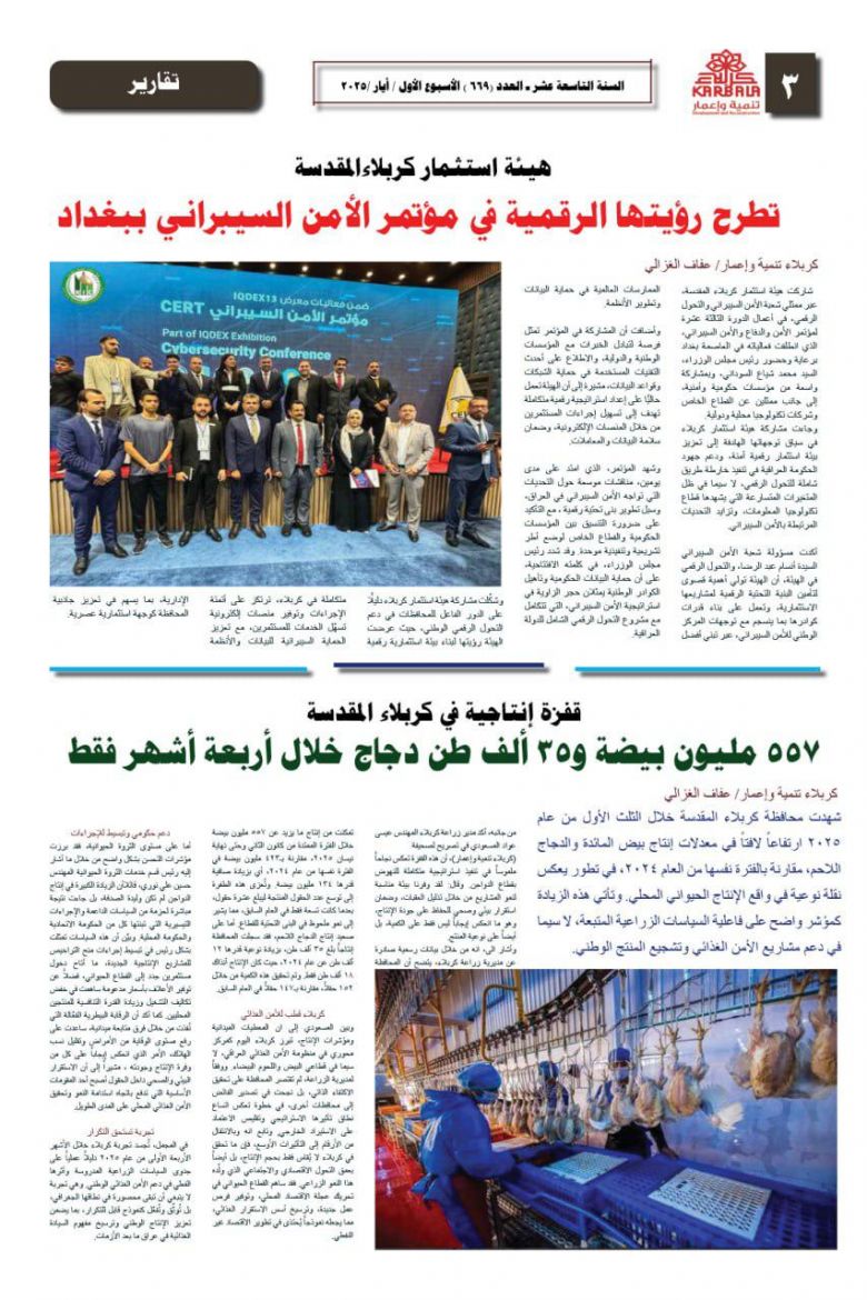 تصفح صحيفة كربلاء تنمية واعمار ذي العدد 669