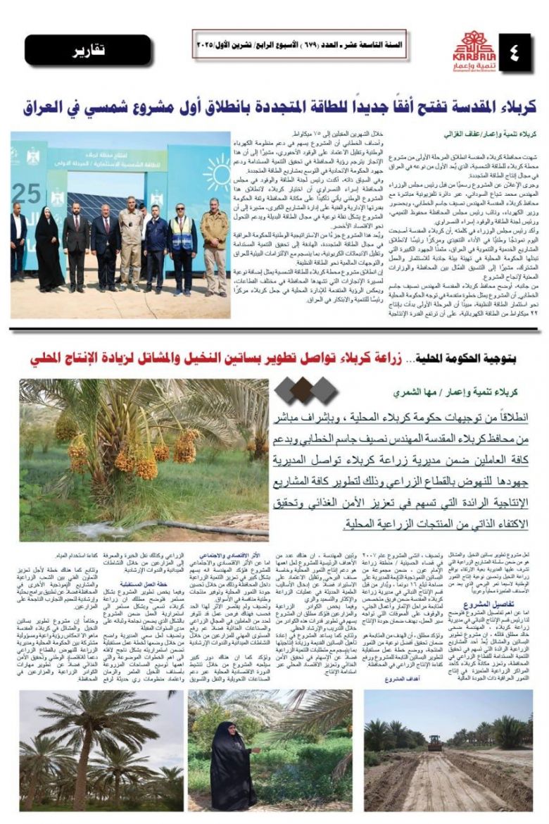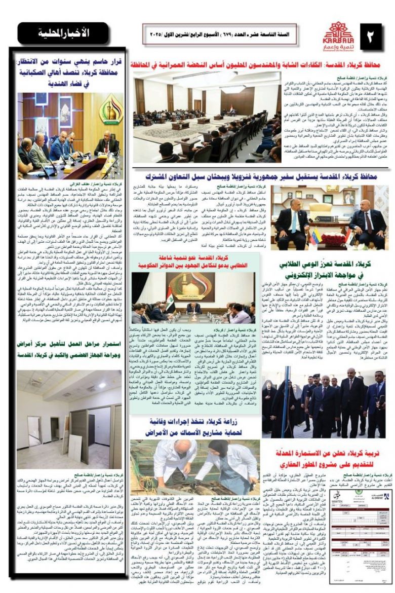 تصفح صحيفة كربلاء تنمية واعمار ذي العدد 679