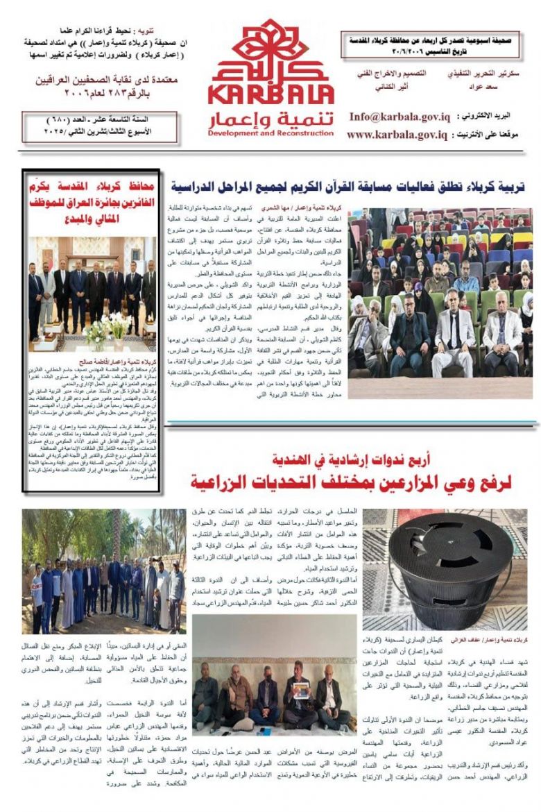 تصفح صحيفة كربلاء تنمية واعمار ذي العدد 680